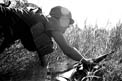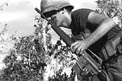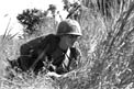 | Spc. 4 Jackie Roush, 22, of Mississippi, from Bravo Co., 4th Battalion, 31st Infantry Regiment, 196th Light Infantry Brigade, Americal Division, looks for the enemy during a firefight in the Hiep Duc Valley, 35 miles south of Danang. The valley was the site of some of the fiercest fighting of the war between Americans and North Vietnamese Army (NVA) regulars.