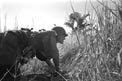 | Pfc. William R. Kryscnski, 20, of Keansburg, N.J., from Bravo Co., 4th Battalion, 31st Infantry Regiment, 196th Light Infantry Brigade, Americal Division, and other soldiers scramble for cover during a firefight in the Hiep Duc Valley, 35 miles south of Danang. The valley was the site of some of the fiercest fighting of the war between Americans and North Vietnamese Army (NVA) regulars.