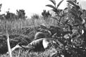 | A soldier from Bravo Co., 4th Battalion, 31st Infantry Regiment, 196th Light Infantry Brigade, Americal Division, takes cover during a firefight in the Hiep Duc Valley, 35 miles south of Danang. The valley was the site of some of the fiercest fighting of the war between Americans and North Vietnamese Army (NVA) regulars.