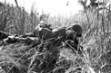 | A soldier from Bravo Co., 4th Battalion, 31st Infantry Regiment, 196th Light Infantry Brigade, Americal Division, hits the deck during a firefight in the Hiep Duc Valley, 35 miles south of Danang. The valley was the site of some of the fiercest fighting of the war between Americans and North Vietnamese Army (NVA) regulars.