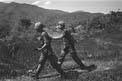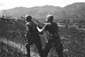 | Pfc. Blair G. (Joe) Furman, 21, of Edmonds, Wash., is led to a Medvac chopper. He was wounded by fragments from a rocket propelled grenade (RPG) during a firefight in the Hiep Duc Valley, 35 miles south of Danang. The valley was the site of some of the fiercest fighting of the war between Americans and North Vietnamese Army (NVA) regulars. He was part of Bravo Co., 4th Battalion, 31st Infantry Regiment, 196th Light Infantry Brigade, Americal Division.