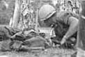 | Under withering North Vietnamese Army (NVA) fire, Staff Sgt. Joe Musial cuts M-79 grenade ammunition off the body of a soldier killed in the opening salvo of an ambush.The fight took place on the Bong Son plain of Vietnam's central lowlands on Feb. 14, 1967. Musial, known to all as Sgt. Rock, was part of D Co., 1st Battalion, 8th Cavalry Regiment, 1st Cavalry Division.