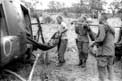 | Troopers from the 1st Cavalry Division wait in an LZ to board UH-1 Huey helicopters before an air assault in Vietnam's Central Highlands.