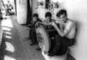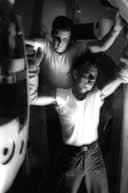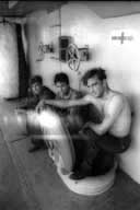 | One of the most miserable jobs in the Navy was working in the boiler room aboard destroyers. Temperatures often reached 140 degrees. Here are three "boiler divers" aboard the destroyer USS Lofberg (DD-759) on July 14, 1966: (left to right) BTFA Bruce McDaniel, Sowthyarmouth, Mass.; BTFW Andrew Arredondo, Uisalia, Calif; and BTFN Roy M. Spangler, Silver City, N.M.
