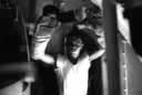 | A crewmember emerges hot and sweaty from a gun turrert after a fire mission July 14, 1966, against a Viet Cong storage area 10 miles north of Danang. The men were aboard the Navy destroyer USS Lofberg (DD-759).