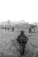 | On July 4, 1966, troops from the 173rd Airborne Division move through fields on a sweep during Operation Yorktown in Long Khanh province about 40 miles northwest of Saigon.