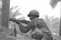 | C Co., 1st Battalion, 8th Cavalry Regiment, 1st Cavalry Division, approached the village of Lieu An the Bong Son plain during Operation Pershing. The night before they had been in a firefight at the village. As they approached in the morning they tripped mines. Three soldiers were wounded and one was killed. Here a soldier fires an M-79 grenade launcher into the village. |
