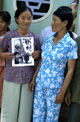 | Nguyen Thi Hoai (left) and her daughter Lam Thi Tho photographed in the village of Lieu An on the Bong Son Plain in Vietnam's central lowlands in 2005. Hoai holds a picture of her taken in 1967 holding Tho in her arms while soldiers from the 1st Cavalry burned the village. |