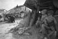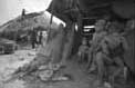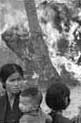 | Small children huddle in a house in front of their shrine as others try to put out burning houses that had been set afire by troopers from C Co., 1st Battalion, 8th Cavalry Regiment, 1st Cavalry Division. The soldiers set fire to the village of Lieu An on the Bong Son plain during Operation Pershing. The night before the soldiers had been in a firefight at the village. As the soldiers approached in the morning they tripped mines. Three soldiers were wounded and one was killed.