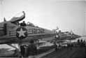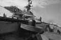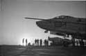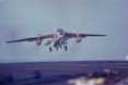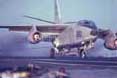 An A-3B lands on the aircraft carrier USS Coral Sea. This multi-purpose aircraft could be used as a bomber or a tanker. Here it is returning from a mission as an air-to-air refueling tanker.