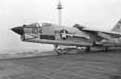A-4 attack jets parked on the flight deck of the aircraft carrier USS Coral Sea in 1966. The plane in the foreground belonged to Lt. Junior grade Bob Dinwiddie, who apparently survived the war.