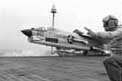 An F-8 Crusader being launched from the flight deck of the aircraft carrier USS Coral Sea in the South China Sea in 1966.