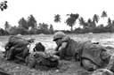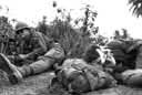 | Troopers from the 1st Cavalry Division pinned down by sniper fire in the central lowlands. A wounded soldier is in the foreground. |
