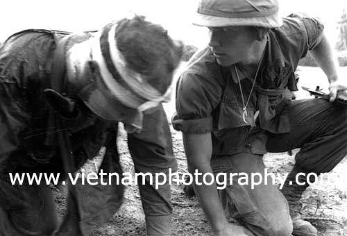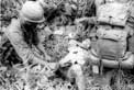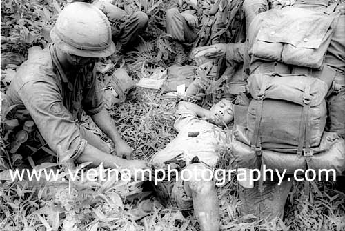 | A mortally wounded North Vietnamese Army (NVA) soldier is treated by a medic from the 1st Cavalry Division in the Central Highlands of Vietnam.