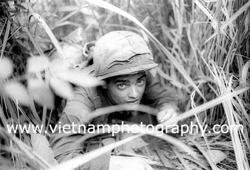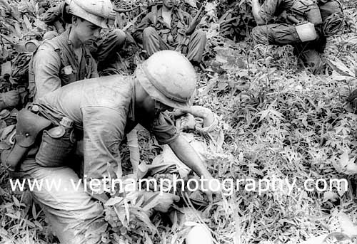| An exhausted trooper with B Co., 2nd Battalion, 5th Cavalry Regiment, 1st Cavalry Division, takes during an operation in the Central Highlands.