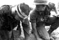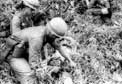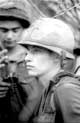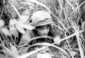 | A sergeant, wounded in the head, crawls to safety during a firefight in the central lowlands of Vietnam.