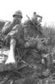 | An exhausted Marine rests after taking Hill 881 N. The Hill was one of several strategically imporant hills surrounding Khe Sahn in western Quang Tri Province in Vietnam's I Corps. The fighting between the Marines and North Vietnamese Army (NVA) regulars took place on April 30, 1967. The Marines were from Golf Co., 2nd Battalion, 3rd Marine Regiment, 3rd Marine Division.