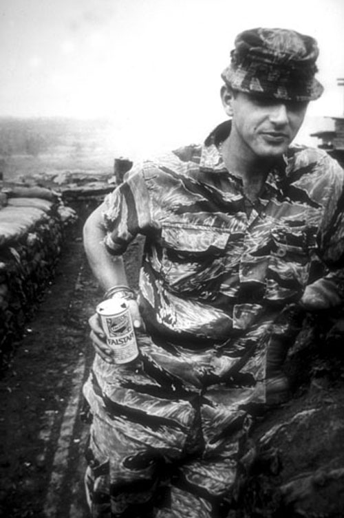 | Lt. Donald F. "Dutch" Schnably, 21, Weston, W. Va., the executive officer of Special Forces team A-239 at the Duc Lap Special Forces camp two miles from the Cambodian border in Quang Duc Province in II Corps in December 1969. The camp was manned by Nung mercenaries, U.S. Special Forces soldiers and soldiers from Battery D, 5th Battalion, 22nd Field Artillery Regiment. It was under regular rocket and artillery attack from North Vietnamese Army (NVA) soldiers who surrounded the base. A few days after this photograph was taken, on Dec. 1, 1969, Schnably was killed by NVA mortar fire.