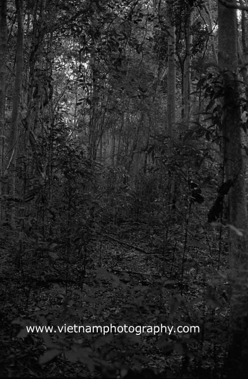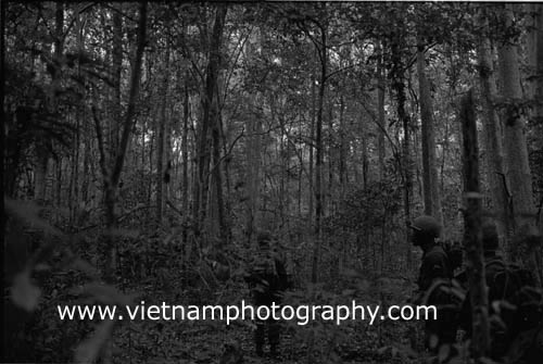 | Ghostlike men barely visible in the dense, triple-canopy jungle of Vietnam's central highlands in 1967.